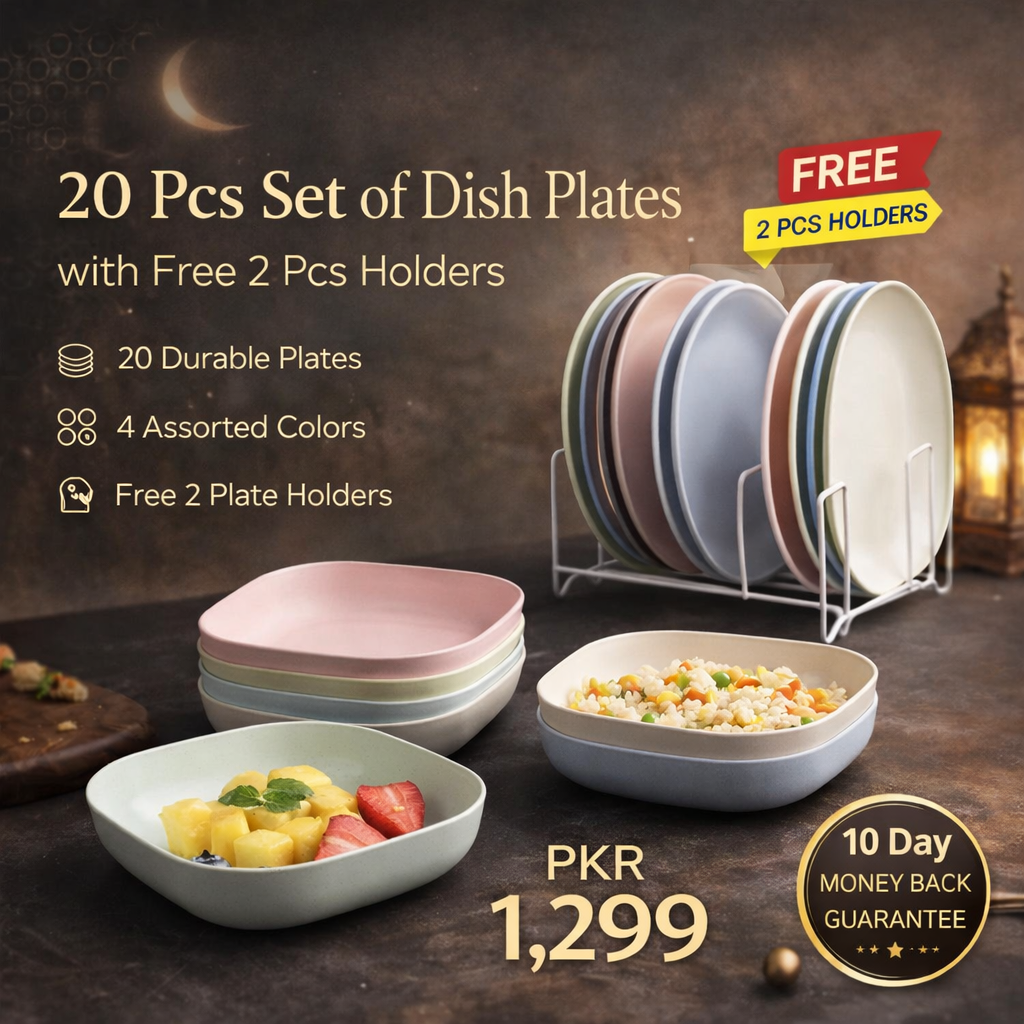 Azaadi Sale Offer 20 Pcs Set of Dish Plates with Free 2 Pcs Holders (20 Plates + 2 Holders)